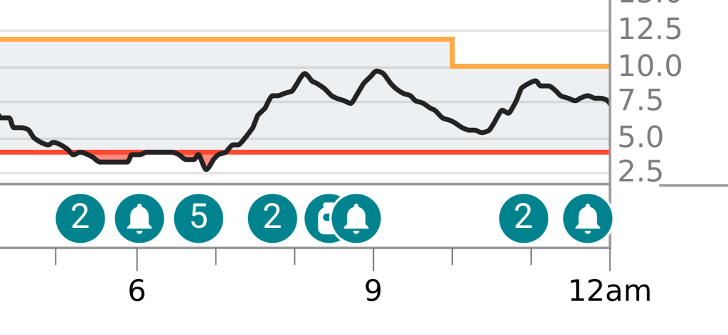 The Novorapid will ‘float’ around in my system, slowly catching the adrenaline and stopping my blood Glucose levels from spiking. Using this system when I train allows me to train intensively without my Blood Glucose going too high for it to compromise my physical ability to train, nor my critical thinking (as high Glucose levels do affect how I think).