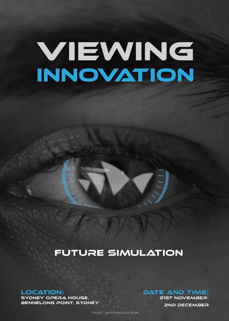 In December (2022) I attended an architectural and planning program hosted inside the Sydney Opera House. The program spanned across 2 weeks with a final group presentation on the last day. The day before the presentation I photographed a group member’s eye and designed a futuristic contact lens to visually express futuristic use of virtual reality. The poster played in the background on a big screen as my group and I presented our final project to the other BUILD PROGRAM groups, Opera House officials and CEO.