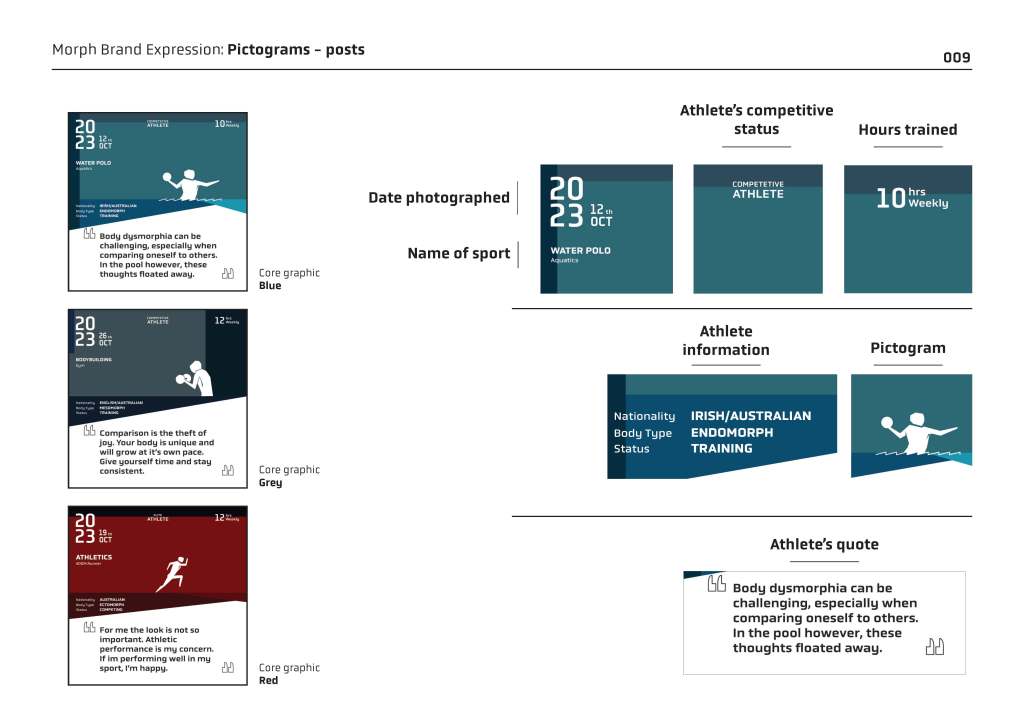 ‘Morph’ is a theoretical photographic social media campaign that utilise athletes in featured photographic posts to address their relatable perspective on body dysmorphia. The athletes are featured on Instagram posts, photographed as illuminated silhouettes in dynamic lighting and posing in their sport’s quintessential movement to appeal to other athletes in the same sporting discipline.