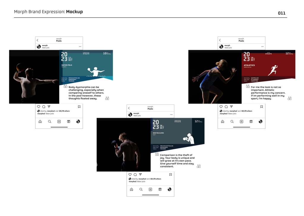 Morph’s mission is to inspire an audience of athletes at all levels to recognise each other’s and their own achievements and fitness development as they push through body dysmorphia. Morph will provide an audience of athletes a platform to relate their personal experiences with body dysmorphia, feel their personal negative self-perception acknowledged and assured that their negative self-body image can be overcome positively. This will subsequently help athletes who follows Morph’s content to develop towards their fitness goal with a positive